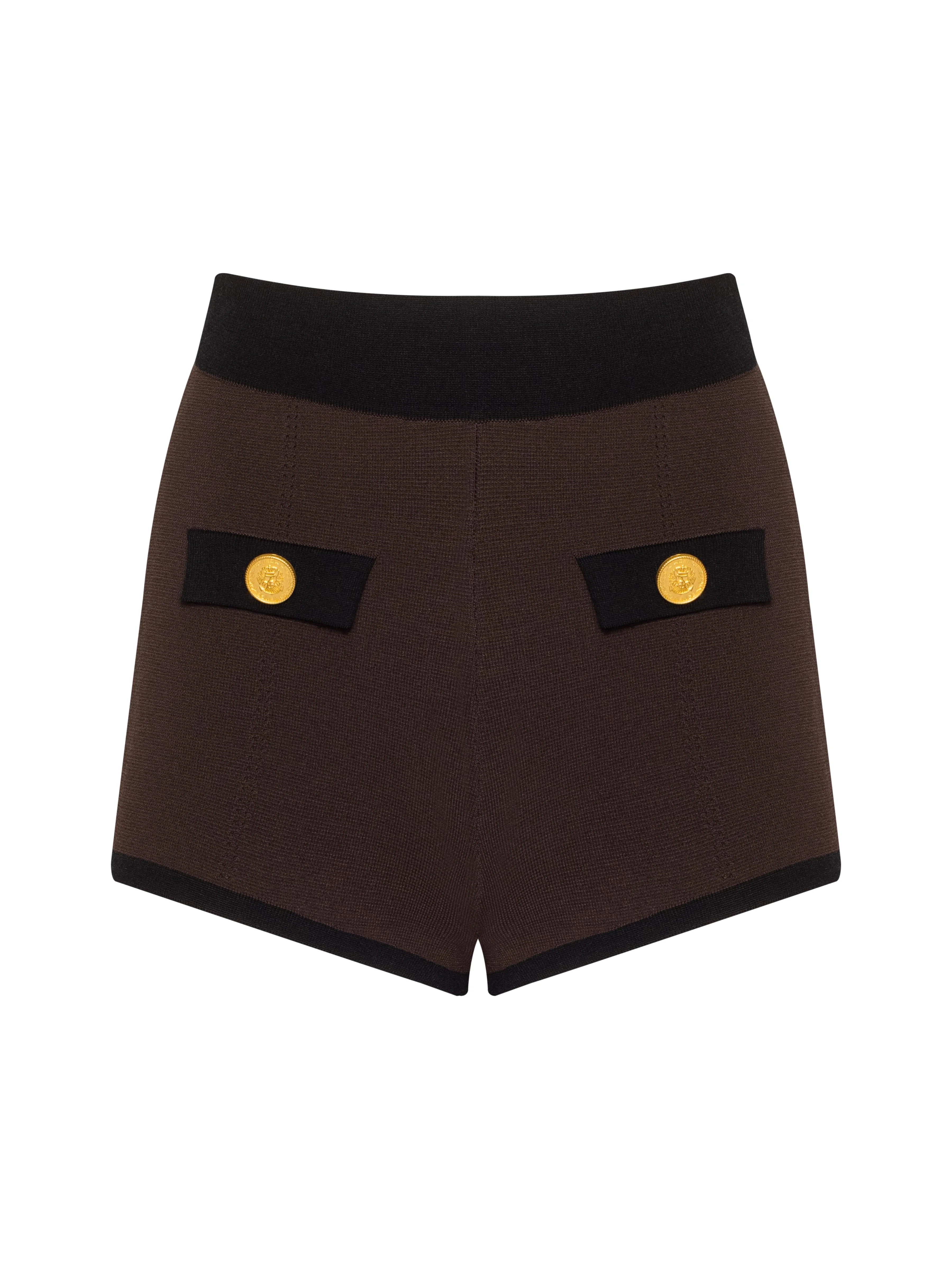 Style No. 80141NXO2-DBRW DETAILS & FIT - Model Details: Height 5'9" | Bust 30" | Waist 24" | Hips 34" | Wearing Size XS - Rise: 12.5" - Inseam: 1.5" - Leg Opening: 10.8" MATERIALS & CARE Composition - 51% Viscose 49% Nylon - Imported Care - Dry clean only - Do not wash - No bleach - No tumble dry - Cool iron
