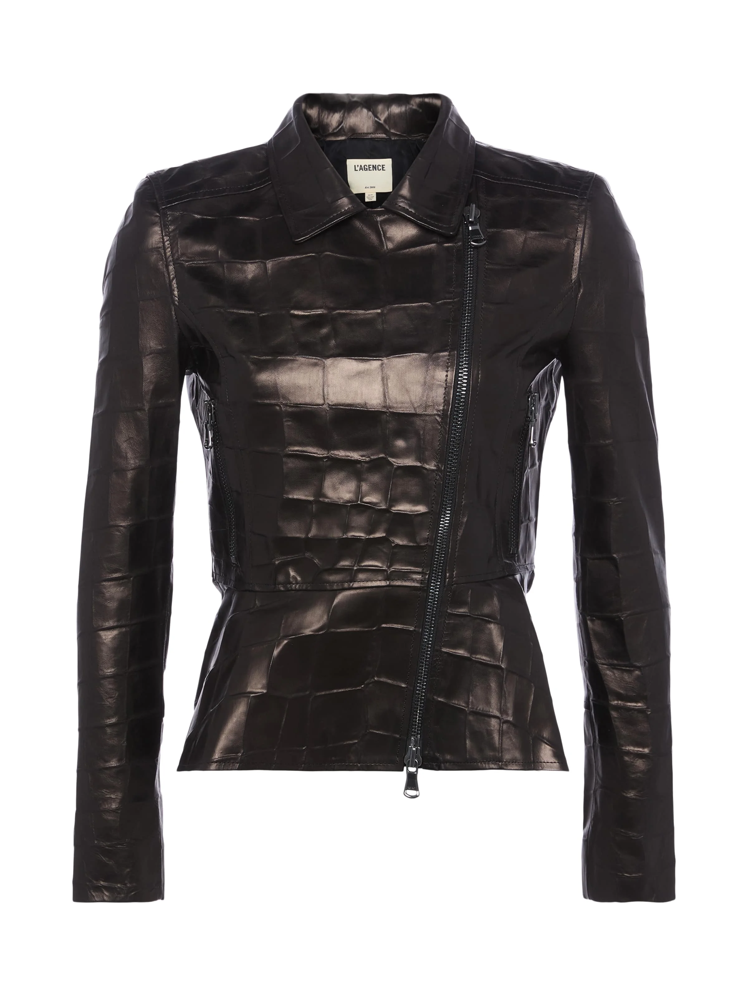 Style No. 1789LGC2-BLAC DETAILS & FIT - Model Details: Height 5'9.5" | Bust 34" | Waist 24" | Hips 34" | Wearing Size XS - About 23.2" From Shoulder to Hem - Sleeve Length: 24.3" MATERIALS & CARE Composition - 100% Lambskin - Imported Care - Dry clean only with leather professional