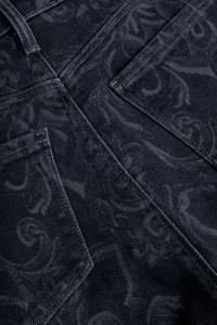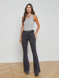 Marty is our tall flare jean, fitted from just above natural waist to knee, featuring our widest flared hem. • Premium laser printed stretch denim • Ultra-high-rise flare • Classic five-pocket construction • Zip fly and button closure • 35" inseam Style No. 2707CSW-GRMD DETAILS & FIT - Model Details: Height 5'10" | Bust 32" | Waist 24'' | Hips 34.5'' | Wearing Size 25 - Rise: 10" - Inseam: 35" - Leg Opening: 21.5" MATERIALS & CARE Composition - 88% Cotton 11% Polyester 1% Spandex - Made in Los Angeles Care - Machine wash