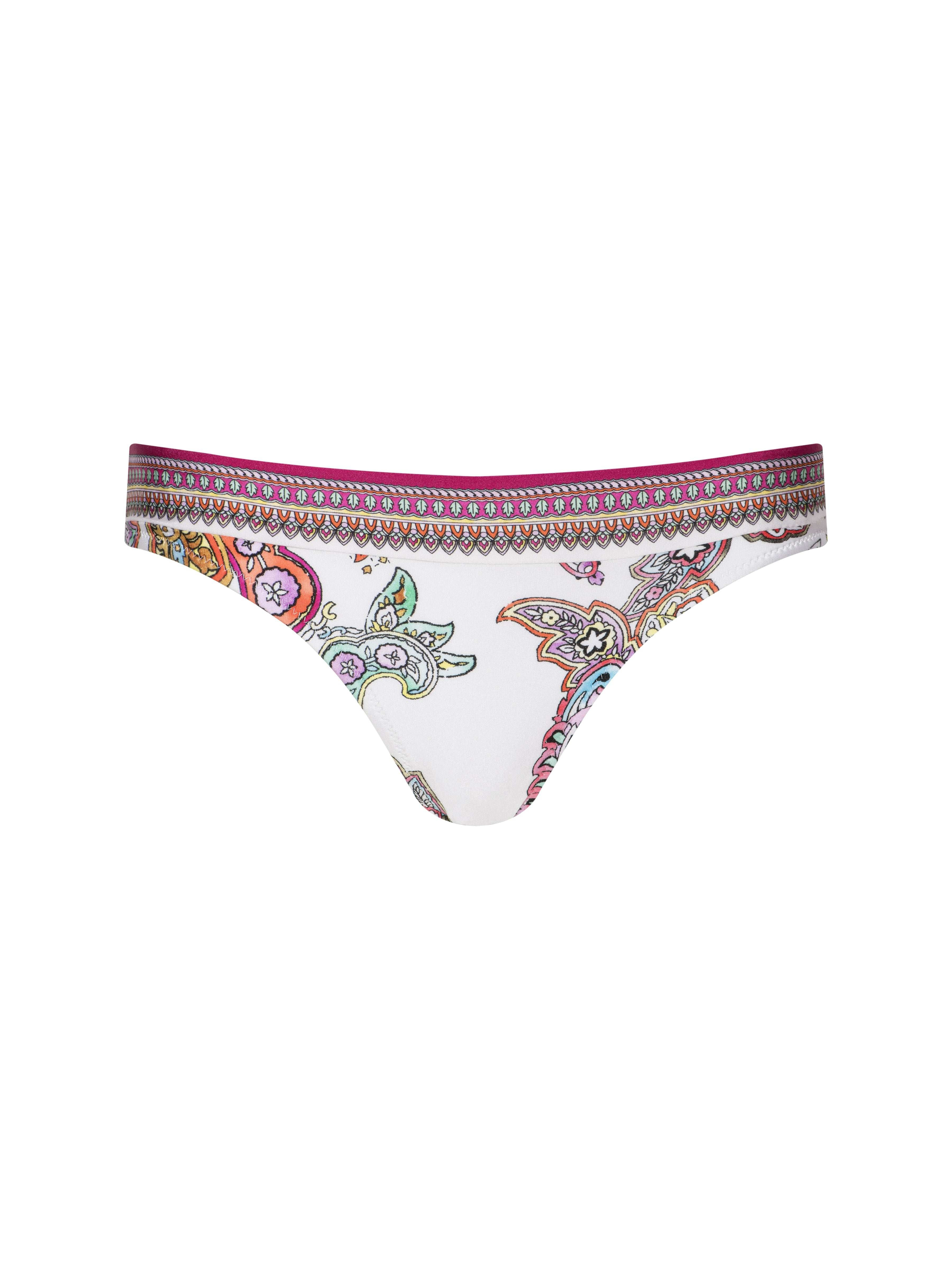 A classic bikini bottom, now in paisley. • Four-way stretch nylon • Moderate coverage Style No. LG5TB93-MULT DETAILS & FIT - Model Details: Height 5'10" | Bust 32" | Waist 24" | Hips 34.5" | Wearing Size XS MATERIALS & CARE Composition - 80% Nylon 20% Elastane - Imported Care - Hand wash
