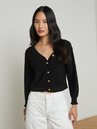Nopal strikes the perfect balance between undone and polished with an effortlessly sultry wide neckline. • Featherweight knit with a hint of cashmere • 3/4 sleeves • Lion head buttons Style No. S80067CXB2-BLGO DETAILS & FIT - Model Details: Height 5'9" | Bust 30" | Waist 24" | Hips 34" | Wearing Size XS - About 15.25" From Shoulder to Hem - Sleeve Length: 17.4" MATERIALS & CARE Composition - 40% Viscose 30% Nylon 27% Polyester 3% Cashmere - Imported