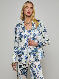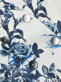 Subtle feminine shaping balances the crisp tailored details of the double-breasted Colin blazer. Now back in a blue floral print. • 100% silk charmeuse • Lined • Shoulder pads • Welt pockets • Button closure Style No. 1485FFS-PASF DETAILS & FIT - Model Details: Height 5'9" | Bust 32" | Waist 24" | Hips 34" | Wearing Size 2 - About 26.75" From Shoulder to Hem - Sleeve Length: 24.3" MATERIALS & CARE Composition - 100% Silk - Imported
