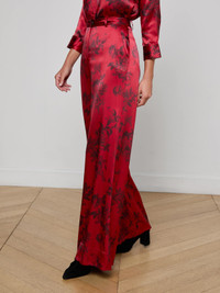 Style No. 2625FFS-BPFF DETAILS & FIT - Model Details: Height 5'9.5" | Bust 32" | Waist 24" | Hips 35" | Wearing Size 2 - Rise: 11.25" - Inseam: 34" - Leg Opening: 14.4" MATERIALS & CARE Composition - 100% Silk - Imported Care - Dry clean only