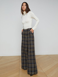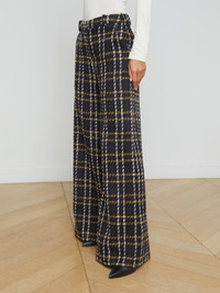 Pilar is the perfectly proportioned pant, now back in a textured tweed. • Tweed plaid fabric • High-rise wide-leg fit • Slit pockets and back welt pockets • Zip fly with hook and bar closure • 34” inseam Style No. 2625TYS-BYMP DETAILS & FIT - Model Details: Height 5'10" | Bust 32" | Waist 24" | Hips 34.5" | Wearing Size 2 - Rise: 11.25" - Inseam: 34" - Leg Opening: 14.5" MATERIALS & CARE Composition - 100% Polyester - Imported