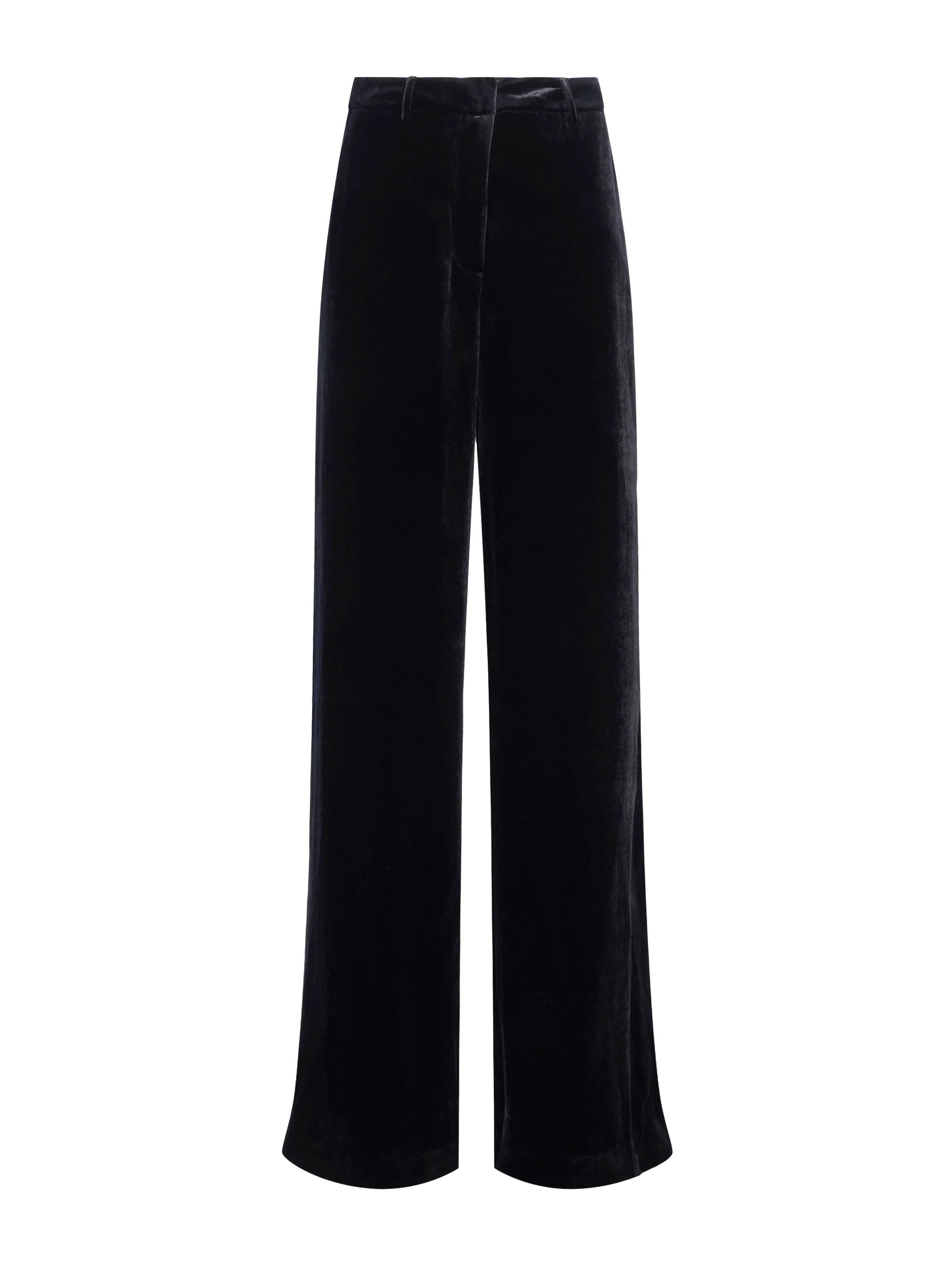 Pilar is the perfectly proportioned pant, now back in a luxurious black velvet. • Silk-infused velvet • High-rise wide-leg fit • Slit pockets and back welt pockets • Zip fly with hook and bar closure • 34” inseam Style No. 2625SVT3-BLAC DETAILS & FIT - Model Details: Height 5'8" | Bust 32" | Waist 23" | Hips 34" | Wearing Size 2 - Rise: 11.5" - Inseam: 34" - Leg Opening: 14.4" MATERIALS & CARE Composition - 82% Viscose 18% Silk - Imported Care - Dry clean only - Do not wash - No bleach - No tumble dry