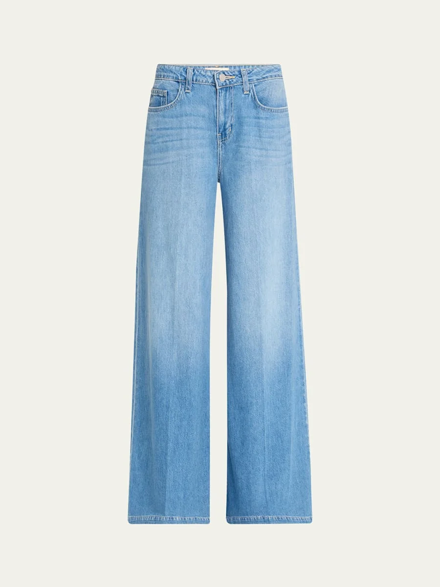 The "Quincy" jeans by L'Agence are presented in lightwash Featherweight allcotton denim Approx. 33" inseam Highrise Fivepocket style Full length Wide legs Button/zip fly; belt loops Cotton Machine wash Made in USA