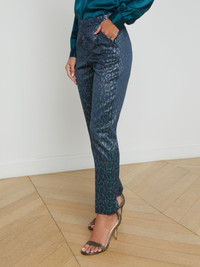 The classic L’AGENCE straight-leg trouser, now in a rich jacquard woven in France with a subtle shine and leopard pattern. • French jacquard fabric • High-rise straight-leg • Hidden hook-and-bar closure • Front slant pockets Style No. 2780BRX-TMLJ DETAILS & FIT - Model Details: Height 5'10" | Bust 32" | Waist 24" | Hips 34.5" | Wearing Size 2 - Rise: 10.75" - Inseam: 29" - Leg Opening: 7.4" MATERIALS & CARE Composition - 50% Polyester 21% Nylon 20% Cotton 9% Metallic Polyester - Imported