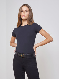 The quintessential crew-neck tee in true black. Slim-fit design in a luxe microfiber has a lush, silky feel and resists pilling. Includes short sleeves. Style No. 5507MMS-BLAC DETAILS & FIT - Model Details: Height: 5' 8'’ | Bust 32” | Waist 23" | Hips 34” | Wearing Size XS - About 24.75" From Shoulder to Hem - Sleeve Length: 5.25" MATERIALS & CARE Composition - 95% Micro Modal 5% Spandex - Made in Los Angeles Care - Hand wash