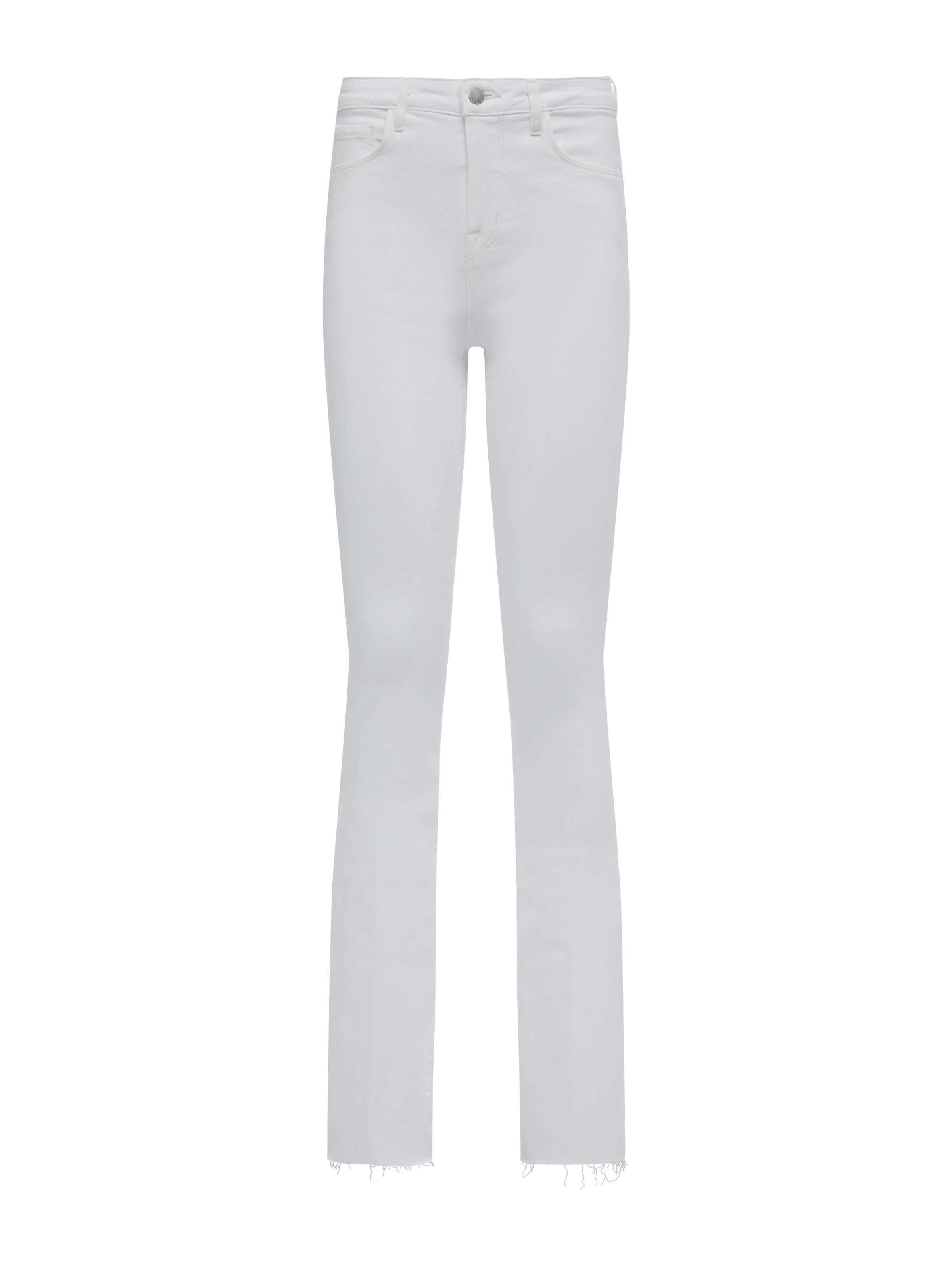 A classic high-rise jean in premium stretch denim and a bright-white hue. With a flattering contoured waistband, style is fitted through hip and thigh before falling in a straight, slim leg to a clean raw hem. Includes 5-pocket construction and front zip fly closure. Style No. 2649ISKR-BLAN DETAILS & FIT - Model Details: 5’9" | Bust: 33" | Waist: 23" | Hips: 34" | Wearing a Size 25 - Rise: 9.5“ - Inseam: 34“ - Leg Opening: 17“ MATERIALS & CARE Composition - 93% Cotton, 6% Polyester, 1% Spandex - Made in Los Angeles Care - Machine wash