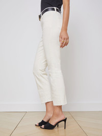 An essential cropped jean with an effortless, relaxed fit in vintage off-white. High-rise, five-pocket design is cut from premium stretch denim that holds its shape while providing supreme comfort. Slim straight leg gently drapes to a raw hem. Style No. 2520ISK-VIWH DETAILS & FIT - Model Details: Height: 5' 8'’ | Bust 32” | Waist 23" | Hips 34” | Wearing Size 25 - Rise: 9.5" - Inseam: 26" - Leg Opening: 12.75" MATERIALS & CARE Composition - 93% Cotton, 6% Polyester, 1% Spandex - Constructed in the USA of Imported Materials Care - Machine wash