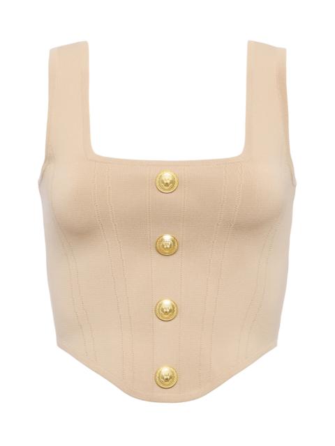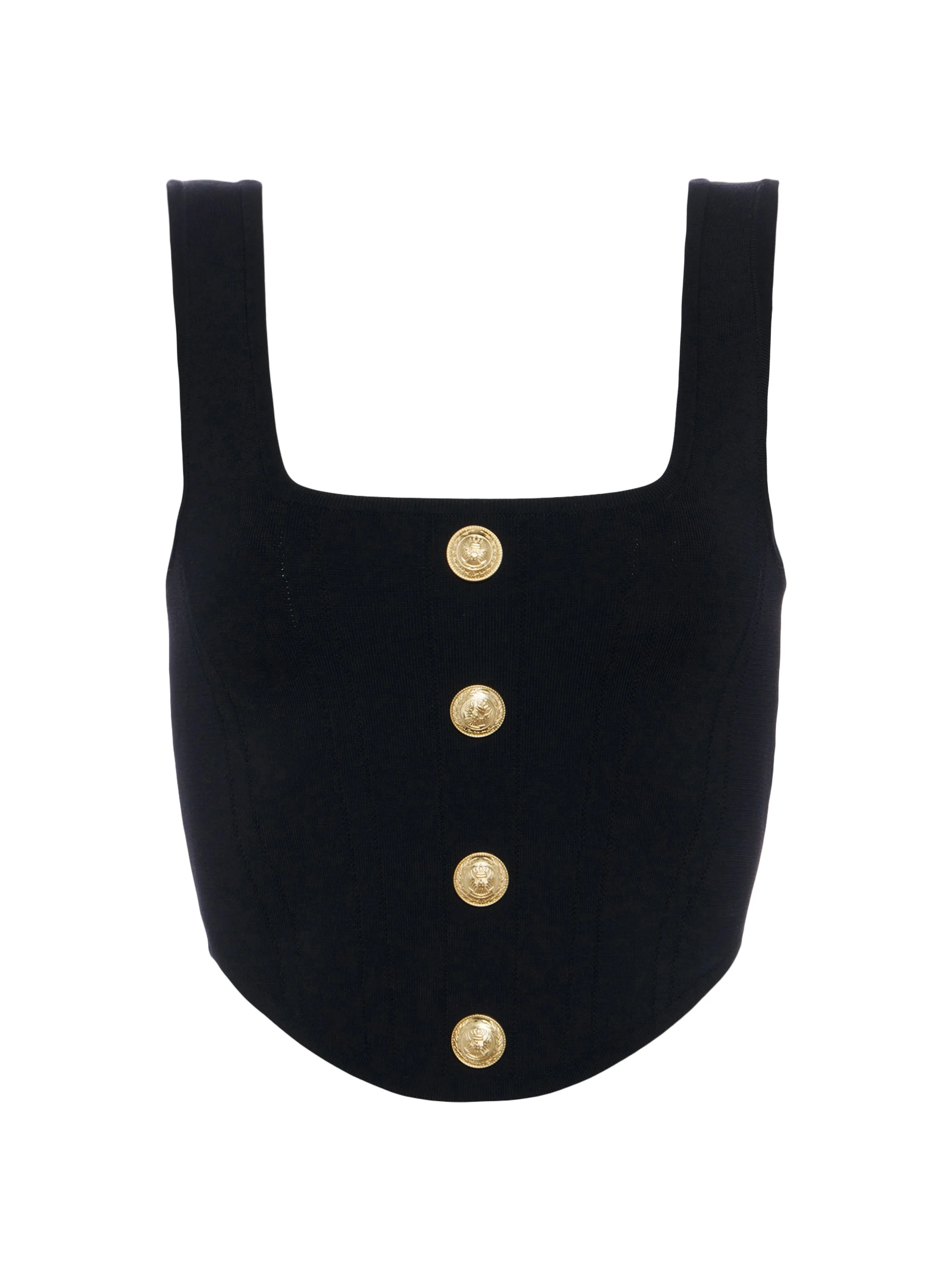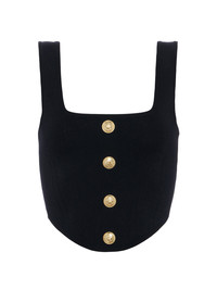 The perfect little something to toss into your summer rotation. The supple ribbed knit of the corset-inspired Saga hugs the figure while offering complete freedom of movement for all-day (and night) wear. Front and back square necklines and our iconic embossed dome buttons add elegance. Dress it down with sneakers or add a sky high heel for evening. Style No. 80010NXC-BLGO DETAILS & FIT - Model Details: Height 5’9.5" | Bust 32" | Waist 24" | Hips 35" | Shoe 8 | Wearing Size XS - About 17.5" From Shoulder to Hem MATERIALS & CARE Composition - 60% Rayon 38% Nylon 2% Spandex - Imported
