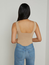 The perfect little neutral top in a power knit that supports and smooths the figure, finished with a flattering curved hemline. • Power knit fabric • Square neck • Fitted • Decorative embossed dome buttons Style No. 80010NXC-ALGO DETAILS & FIT - Model Details: Height 5'10" | Bust 34" | Waist 24" | Hips 35" | Wearing Size XS - About 17.6" From Shoulder to Hem MATERIALS & CARE Composition - 60% Rayon 38% Nylon 2% Spandex - Imported