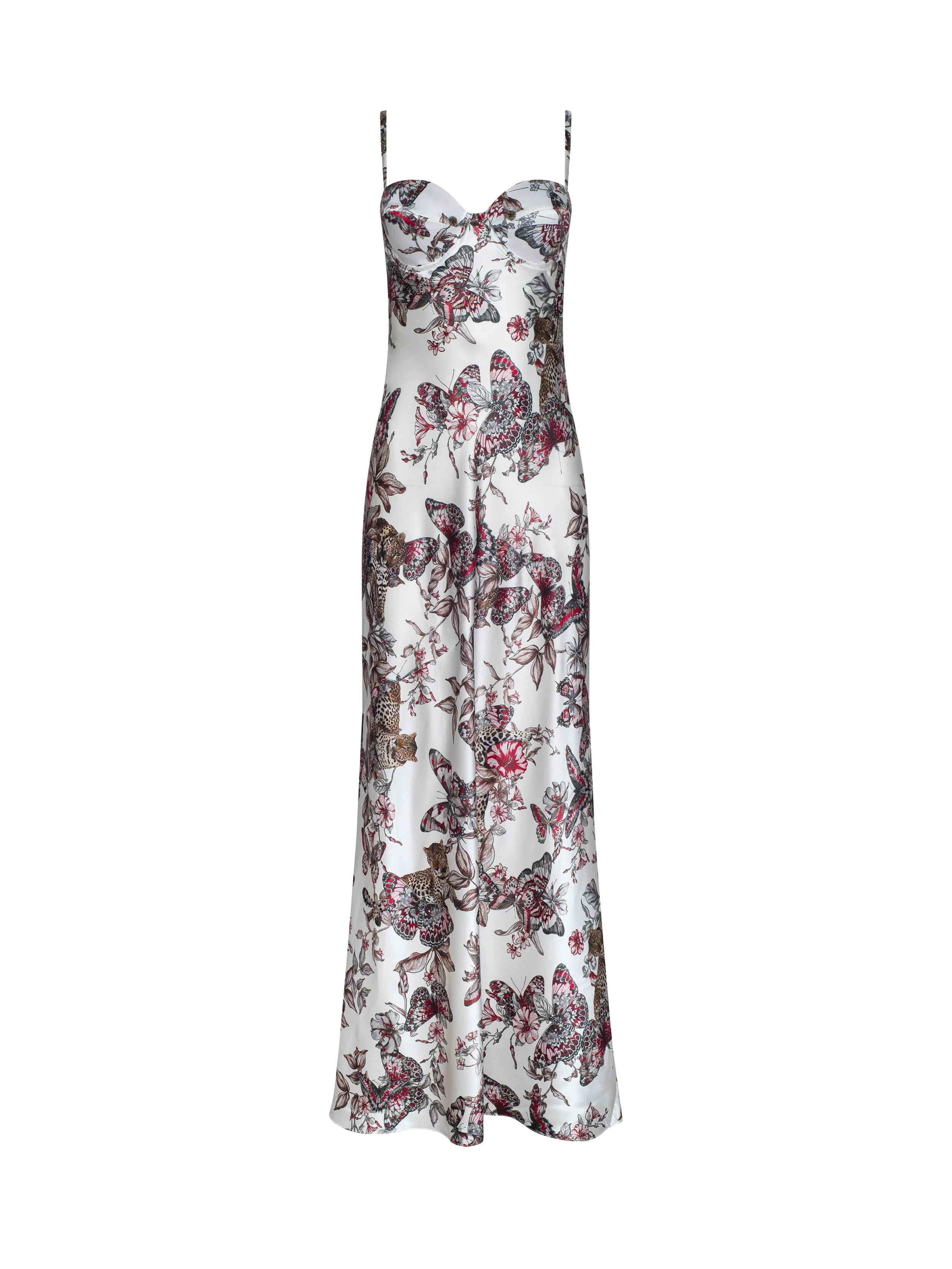 Style No. 61810LLS-BJNN DETAILS & FIT - Model Details: Height 5'9.5" | Bust 34" | Waist 24" | Hips 34" | Wearing Size 2 - About 48.75" From Shoulder to Hem MATERIALS & CARE Composition - 100% Silk - Imported Care - Dry clean only