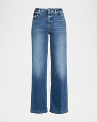 L'Agence "Scottie" jeans in faded denim Approx. 32" inseam High rise Fivepocket style Wide legs Full length Button/zip fly; belt loops Cotton Machine wash Made in USA
