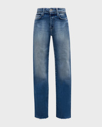 - L'Agence "Scottie" wide-leg jeans with a raw hem in faded dark-wash denim - Approx. 32" inseam - High rise - Five-pocket style - Fitted through the hips - Full length - Button/zip fly; belt loops - Cotton/polyester/spandex - Made in USA - Model is 5'10"/177cm.