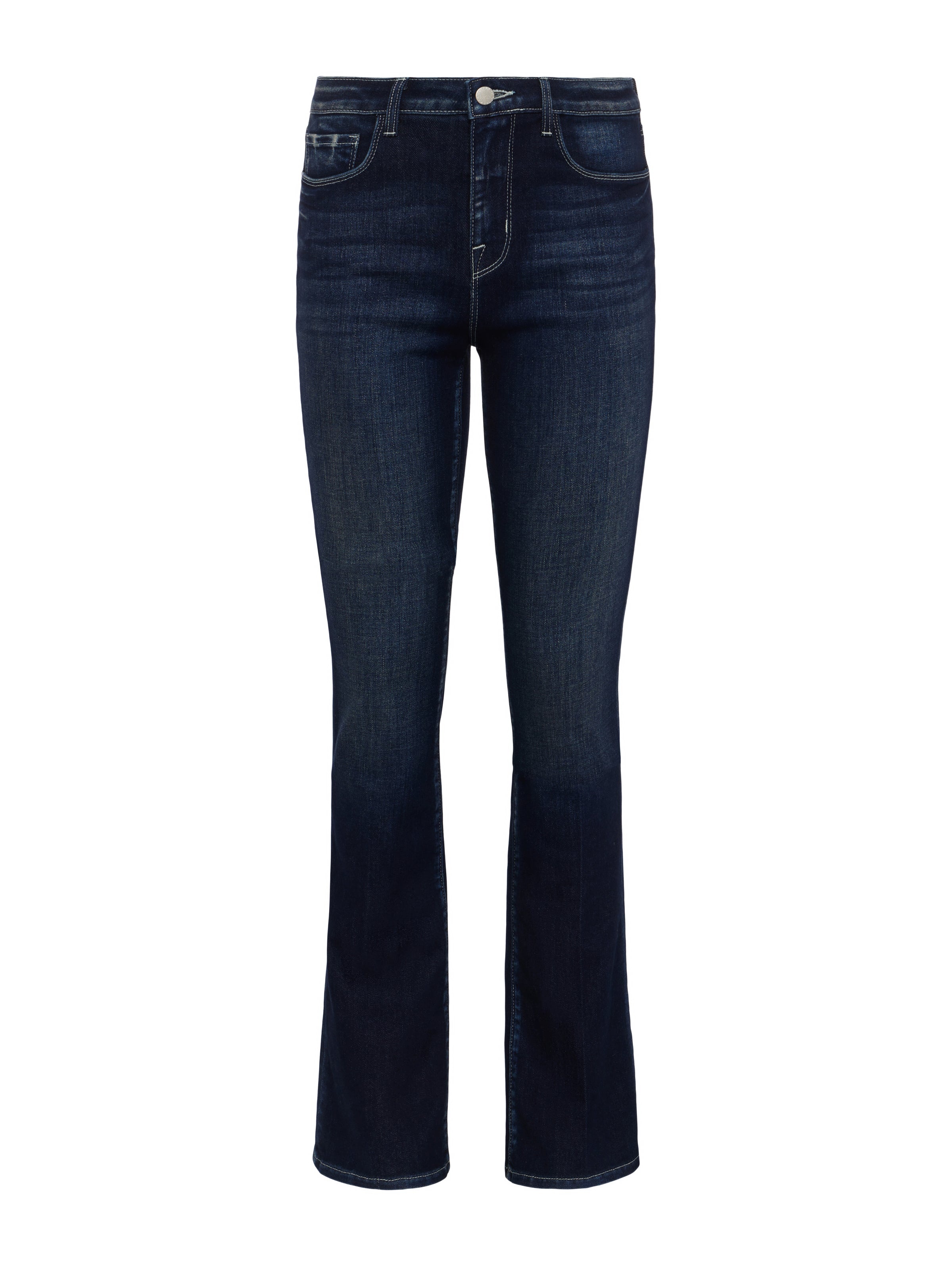 A sleek, slim bootcut, fitted through the hips and knee. A contoured waistband securely hugs the natural waist without gaping. • Premium stretch denim • High-rise baby bootcut • Classic five-pocket construction • Zip fly and button closure • 34" inseam Style No. 2700BLD-CRET DETAILS & FIT - Model Details: Height 5'10" | Bust 32" | Waist 24'' | Hips 34.5'' | Wearing Size 25 - Rise: 9.75" - Inseam: 34" - Leg Opening: 17.5" MATERIALS & CARE Composition - 79% Cotton 20% Repreve Polyester 1% Spandex - Made in Los Angeles Care - Machine wash