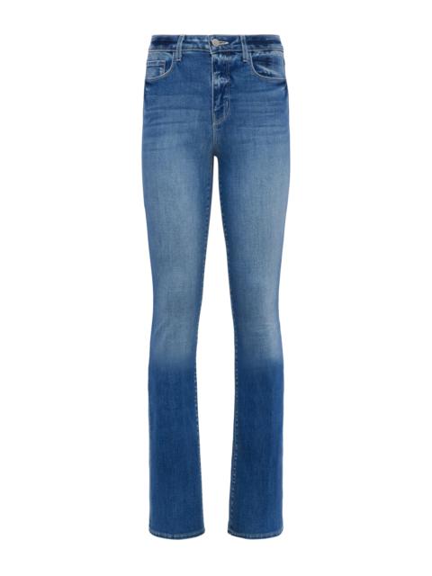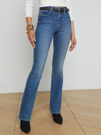 A sleek, slim bootcut, fitted through the hips and knee, built with a contoured waistband that securely hugs the natural waist without gaping. Now back in a beautiful indigo wash. • REPREVE woven denim • High-rise baby bootcut • Classic five-pocket construction • Zip fly and button closure • 34" inseam Style No. 2700BLD-STNT DETAILS & FIT - Model Details: Height 5'9" | Bust 32" | Waist 24" | Hips 34" | Wearing Size 25 - Rise: 9.75" - Inseam: 34" - Leg Opening: 17.5" MATERIALS & CARE Composition - 79% Cotton 20% Repreve Polyester 1% Spandex - Made in Los Angeles