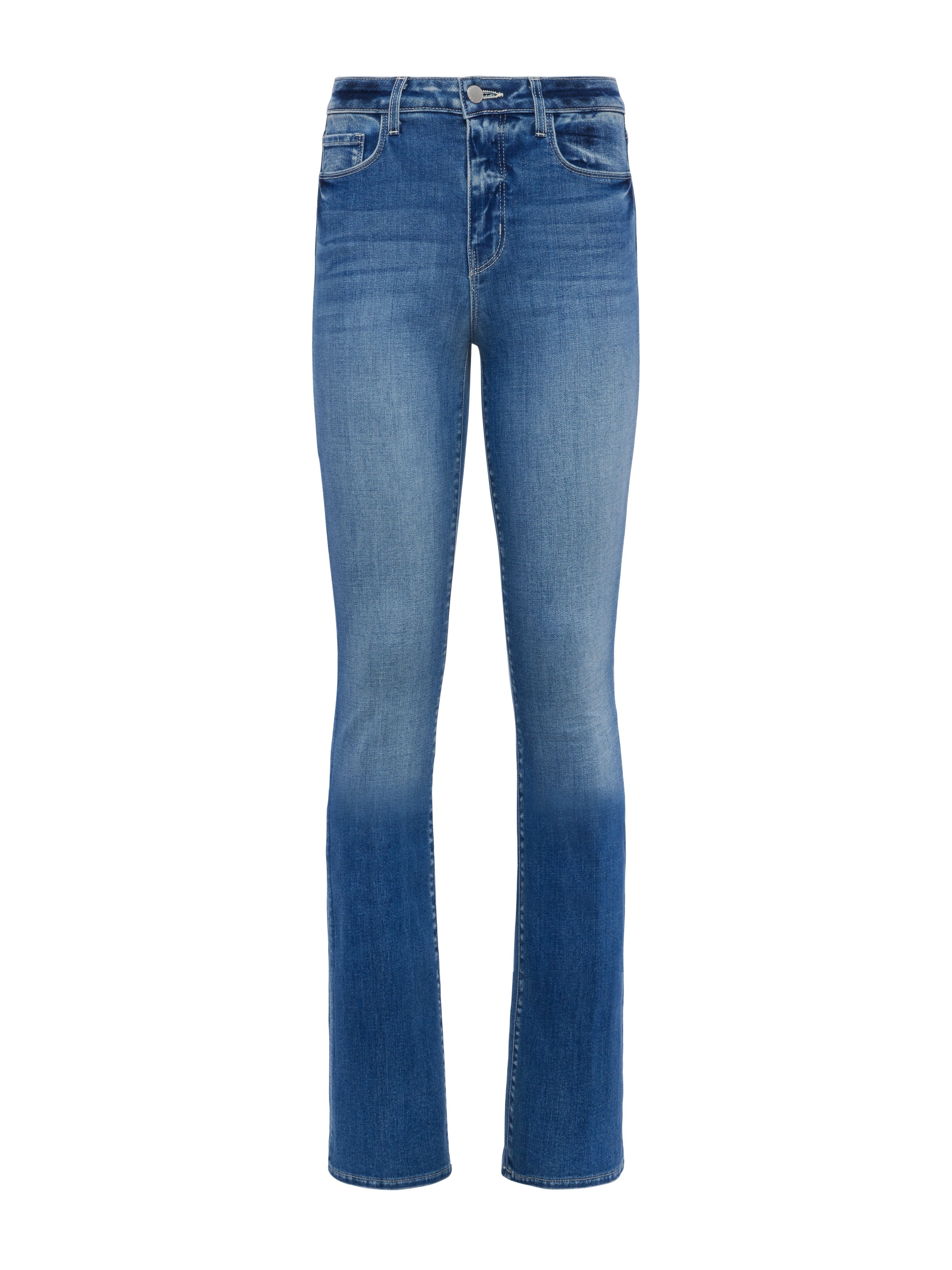 A sleek, slim bootcut, fitted through the hips and knee. A contoured waistband securely hugs the natural waist without gaping. Now back in an aged indigo wash. • Subtle stretch denim with sustainable fibers • High rise baby bootcut • 5-pocket construction • Zip fly and button closure • 34" inseam Style No. 2700BLD-ITHA DETAILS & FIT - Model Details: Height 5'10.5" | Bust 33" | Waist 24" | Hips 34" | Wearing Size 25 - Rise: 9.75" - Inseam: 34" - Leg Opening: 17.5" MATERIALS & CARE Composition - 79% Cotton 20% Repreve Polyester 1% Spandex - Imported Care - Machine wash