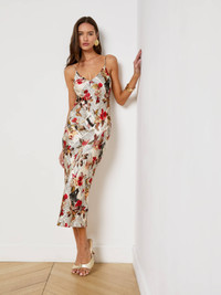 Style No. 61253NEY-NEWA DETAILS & FIT - Model Details: Height 5'10" | Bust 32" | Waist 23.5" | Hips 34.5" | Wearing Size 2 - About 44.6" From Shoulder to Hem MATERIALS & CARE Composition - 100% Silk - Imported Care - Dry clean only - Do not wash - No bleach - No tumble dry - Low iron if needed