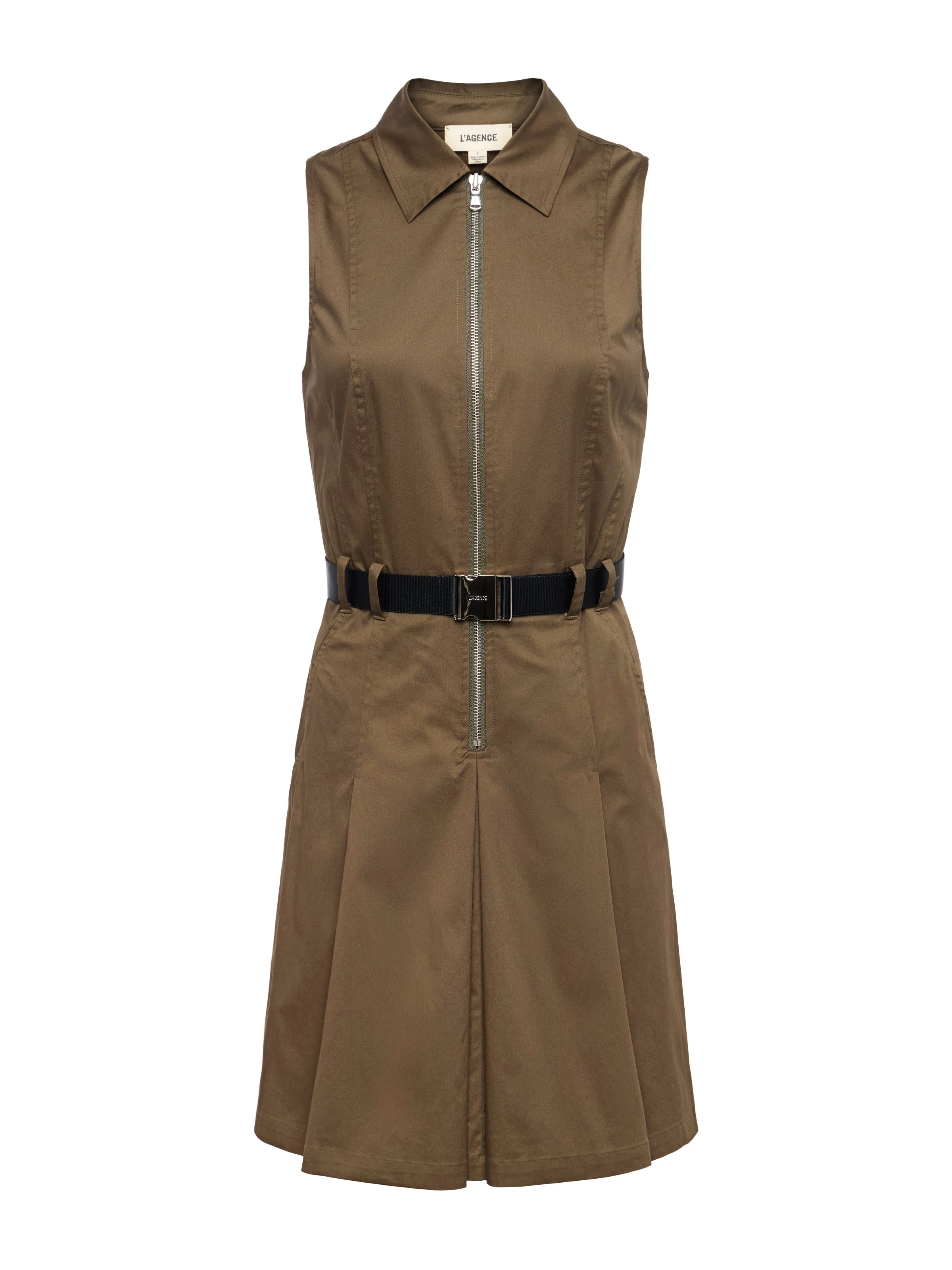 Style No. 61571LCN-PINE DETAILS & FIT - Model Details: Height 5'9" | Bust 32" | Waist 24" | Hips 34" | Wearing Size 2 - About 35.75" From Shoulder to Hem MATERIALS & CARE Composition - 62% Cotton 35% Nylon 3% Spandex - Imported Care - Dry clean only - Do not wash - No bleach - No tumble dry - Low iron if needed