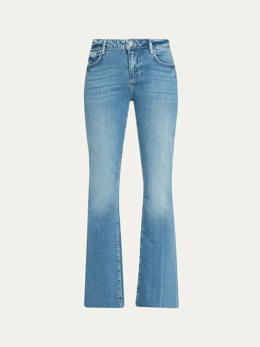 L'Agence "Sneeki" straightleg jeans featuring a raw hem in stretchdenim Approx. 32" inseam Low rise; sits at the hip Fivepocket style Slim fit Full length Button/zip fly; belt loops Cotton/lyocell/elastane Made in USA