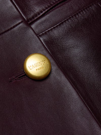 Style No. 61443NLL-DMLB DETAILS & FIT - Model Details: Height 5'9.5" | Bust 34" | Waist 24" | Hips 34" | Wearing Size 2 - About 33.25" From Shoulder to Hem - Sleeve Length: 24.2" MATERIALS & CARE Composition - 100% Lambskin - Imported Care - Do not wash - Do not bleach - Do not tumble dry - Do not iron - Professional leather dry clean only