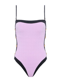 The one-piece swimsuit has never looked so chic. Contrasting black trim lends effortless sophistication and gold button accents add a hint of glamour. • Water-safe textured boucle fabric • Additional layer of lining for shape and support • High leg cut • Removable cups • Adjustable & removable straps Style No. LG5AM11-LVBK DETAILS & FIT - Model Details: Height 5'10" | Bust 32" | Waist 24" | Hips 34.5" | Wearing Size XS - Adjustable / Removable Straps - Removable Cups MATERIALS & CARE Composition - 93% Nylon 7% Spandex - Imported Care - Hand wash