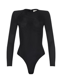 Style No. 40555PRM-BLAC DETAILS & FIT - Model Details: Height 5'10" | Bust 32" | Waist 23.5" | Hips 34.5" | Wearing Size XS - About 26.8" From Shoulder to Bottom - Sleeve Length: 23" MATERIALS & CARE Composition - 90% Nylon 10% Spandex - Imported Care - Dry clean only - Do not wash - No bleach - No tumble dry - Low iron if needed