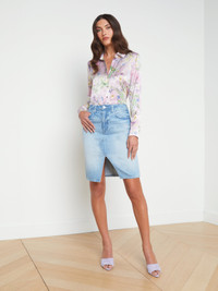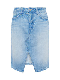 The timeless and on-trend denim skirt is an all-season closet hero. A split hem adds a subtly sexy element to the Tylee. The vintage wash, seaming details, and five-pocket construction keep the look authentic. Wear the Tylee all summer with a tee and sneakers. For fall, add a boot and structured jacket. Style No. 3412YRO-PALI DETAILS & FIT - Model Details: Height 5'10" | Bust 32" | Waist 24'' | Hips 34.5'' | Wearing Size 25 - About 21" From Waist to Hem MATERIALS & CARE Composition - 100% Cotton - Made in Los Angeles Care - Machine wash
