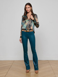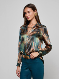Style No. 40223FCY-TLMF DETAILS & FIT - Model Details: Height 5'10" | Bust 32" | Waist 23.5" | Hips 34.5" | Wearing Size XS - About 26.5" From Shoulder to Hem - Sleeve Length: 24" MATERIALS & CARE Composition - 100% Silk - Imported Care - Dry clean only - Do not wash - No bleach - No tumble dry - Low iron if needed