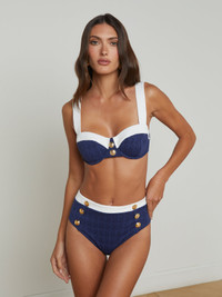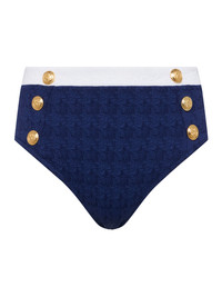 Our most flattering and sophisticated bikini bottom, featuring a subtle houndstooth trim and decorative gold buttons. • Water-safe textured boucle fabric • Additional lining for shape and support • Moderate bottom coverage Style No. LG5AM99-MWGB DETAILS & FIT - Model Details: Height 5'10" | Bust 32" | Waist 24" | Hips 34.5" | Wearing Size XS MATERIALS & CARE Composition - 93% Nylon 7% Elastane - Imported Care - Hand wash
