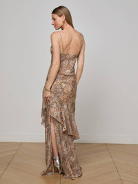 Style No. 61381VCF-VALS DETAILS & FIT - Model Details: Height 5'8" | Bust 32" | Waist 24.5" | Hips 34" | Wearing Size 2 - About 62.5" From Shoulder to Hem MATERIALS & CARE Composition - 100% Silk - Imported Care - Dry clean only - Do not wash - No bleach - No tumble dry - Low iron if needed