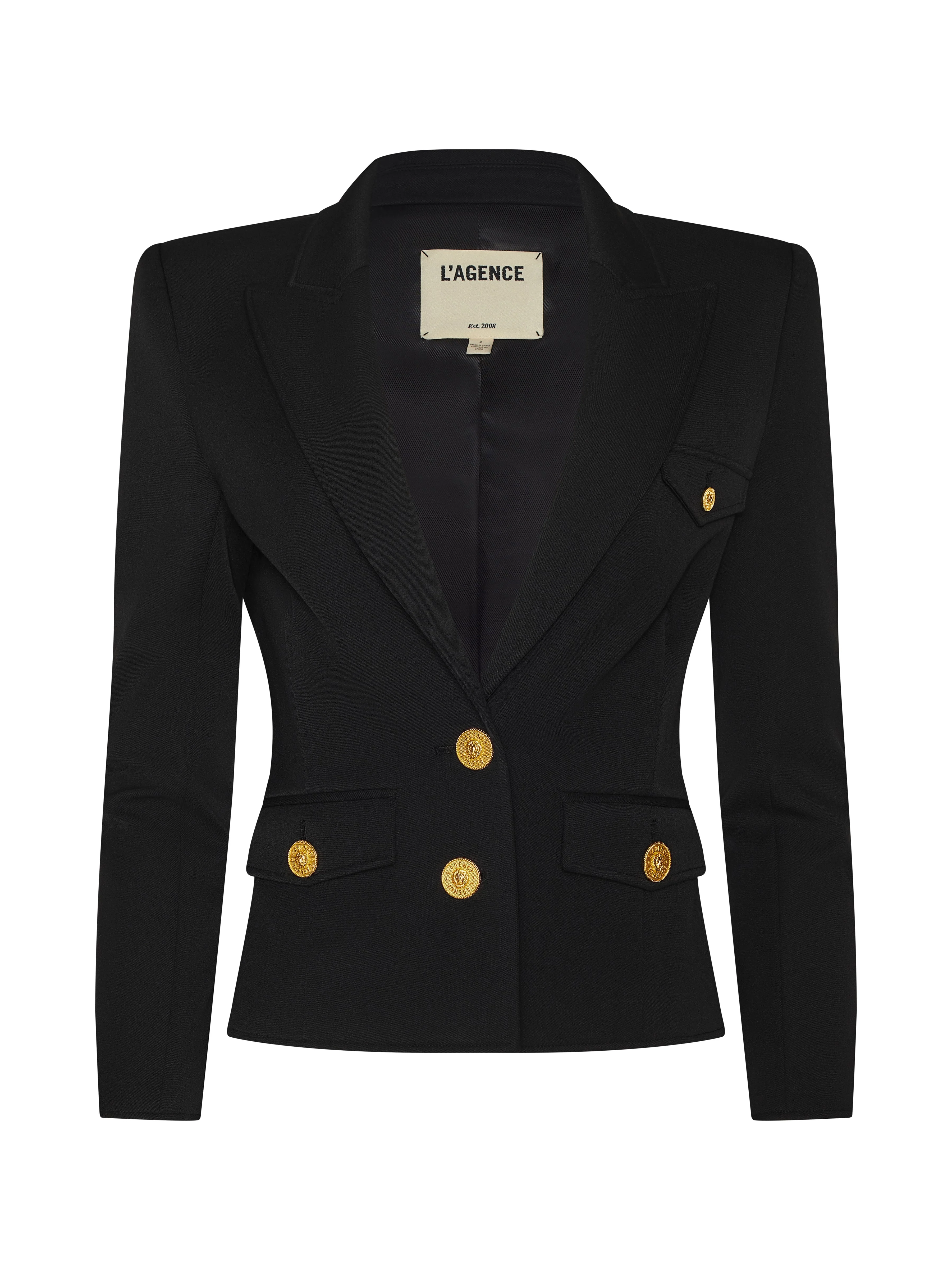 Style No. 1940NGX-BLAC DETAILS & FIT - Model Details: Height 5'10" | Bust 32" | Waist 23.5" | Hips 34.5" | Wearing Size 2 - About 23.5" From Shoulder to Hem - Sleeve Length: 22.75" MATERIALS & CARE Composition - 68% Polyester 29% Rayon 3% Spandex - Imported Care - Dry clean only