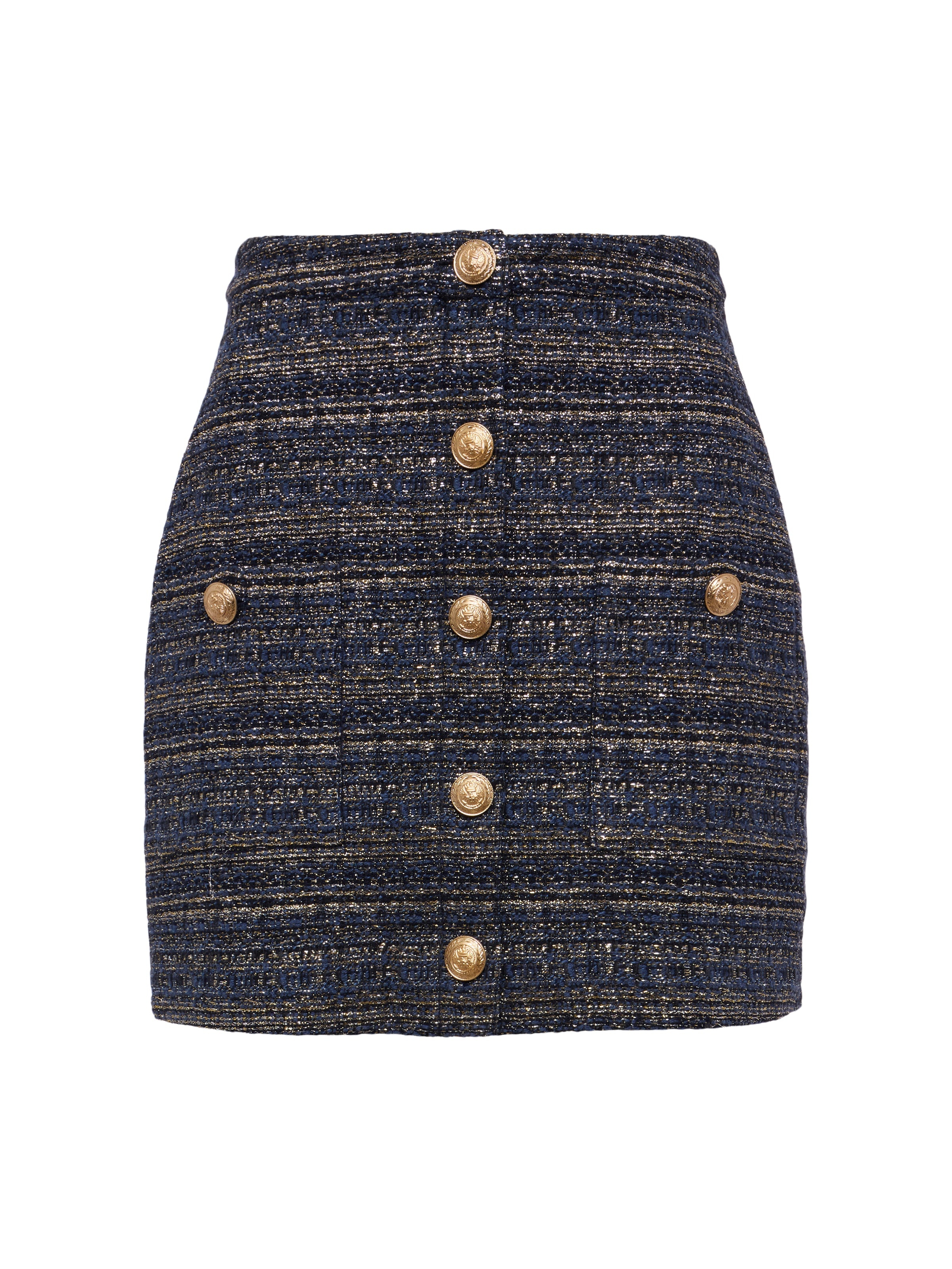 Our bestselling miniskirt is back in a shimmering tweed. Worn suited or separate, the Zander will be your go-to for the season. • Italian tweed • Faux button front • Embossed dome buttons • Back invisible zip closure Style No. 3416MNX-BUGM DETAILS & FIT - Model Details: Height 5'9" | Bust 30" | Waist 24" | Hips 34" | Wearing Size 2 - About 15.75" From Waist to Hem MATERIALS & CARE Composition - 71% Cotton 13% Polyester 13% Acrylic 3% Nylon - Imported Care - Machine wash