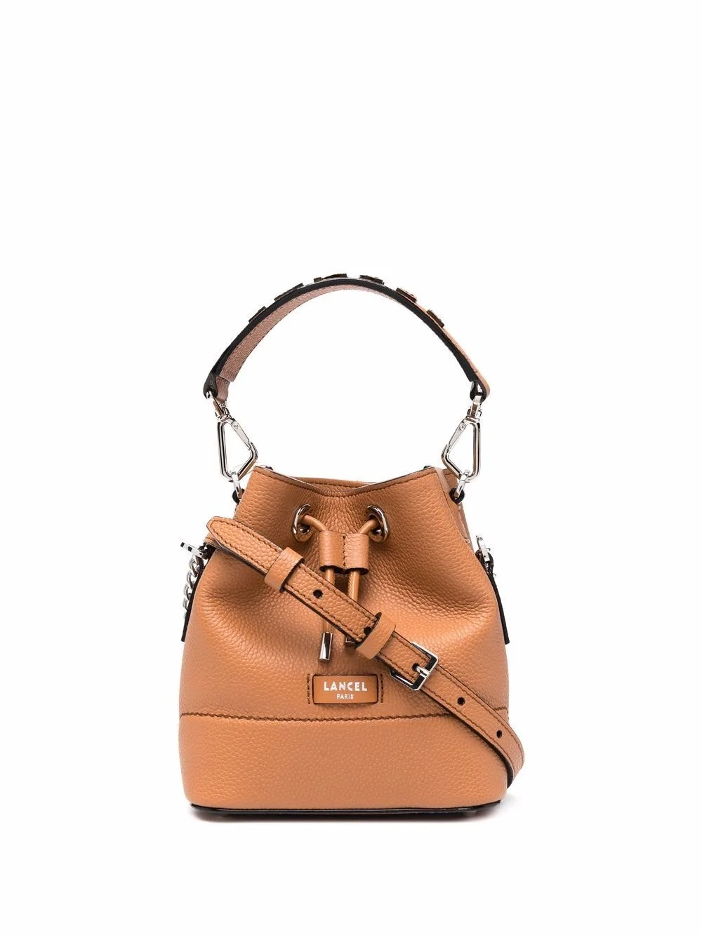 drawstring leather bag bron calf leather drawstring fastening adjustable shoulder strap single flat top handle silver-tone logo lettering Made in Italy Composition Outer: Calf Leather 100% SIZE & FIT Model measurements Height 5 ft 10 in(1.78 m) Bust/Chest 33.07 in(84 cm) Hips 36.61 in(93 cm) Waist 24.8 in(63 cm) Measurement DEPTH 3.54 in(9 cm) HANDLE 3.54 in(9 cm) HEIGHT 7.08 in(18 cm) MINIMUM WIDTH 5.9 in(15 cm) STRAP 19.29 in(49 cm) WIDTH 7.48 in(19 cm)
