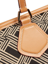 large monogram leather-trimmed tote bag Highlights - Beige and black - Jacquard canvas - Leather trim - Top handles - Zip fastening - Embossed logo Made in Italy Composition Outer: Polyester 100%, Calf Leather 100% Lining: Nylon 100% SIZE & FIT Measurement DEPTH 7.08 in(18 cm) HEIGHT 15.94 in(40.5 cm) WIDTH 13.77 in(35 cm)