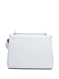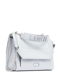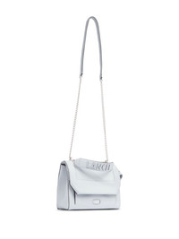 mini leather cross bag Highlights - Ice blue - Leather - Smooth grain - Decorative stitching - Detachable chain-link shoulder strap - Single logo-embossed top handle - Flap-buckle fastening - Front zip-fastening compartment - Main compartment - Internal logo plaque - Internal zip-fastening pocket Made in Italy Composition Lining: Fabric 100% Outer: Smooth Leather 100% SIZE & FIT Measurement DEPTH 4.72 in(12 cm) HEIGHT 7.48 in(19 cm) WIDTH 9.25 in(23.5 cm)