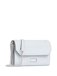 Ninon wallet Highlights - Ice blue - Calf leather - Pebbled texture - Applique logo - Contrasting trim - Adjustable leather and chain-link shoulder strap - Foldover top with magnetic fastening - Partitioned compartment - Cotton lining - Internal zip-fastening pocket - Internal card slots Imported Composition Outer: CALFSKIN 100% Lining: Cotton 100% SIZE & FIT Measurement DEPTH 0.78 in(2 cm) HEIGHT 4.72 in(12 cm) WIDTH 7.87 in(20 cm)