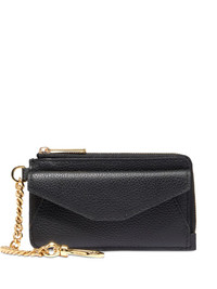 zip cardholder Highlights - Black - Leather - Zip fastening - Gold-tone chain - Envelope flap - Card slots Made in Italy Composition Lining: Polyester 100% Outer: Calf Leather 100% SIZE & FIT Measurement HEIGHT 5.11 in(13 cm) DEPTH 0.39 in(1 cm) WIDTH 2.75 in(7 cm)