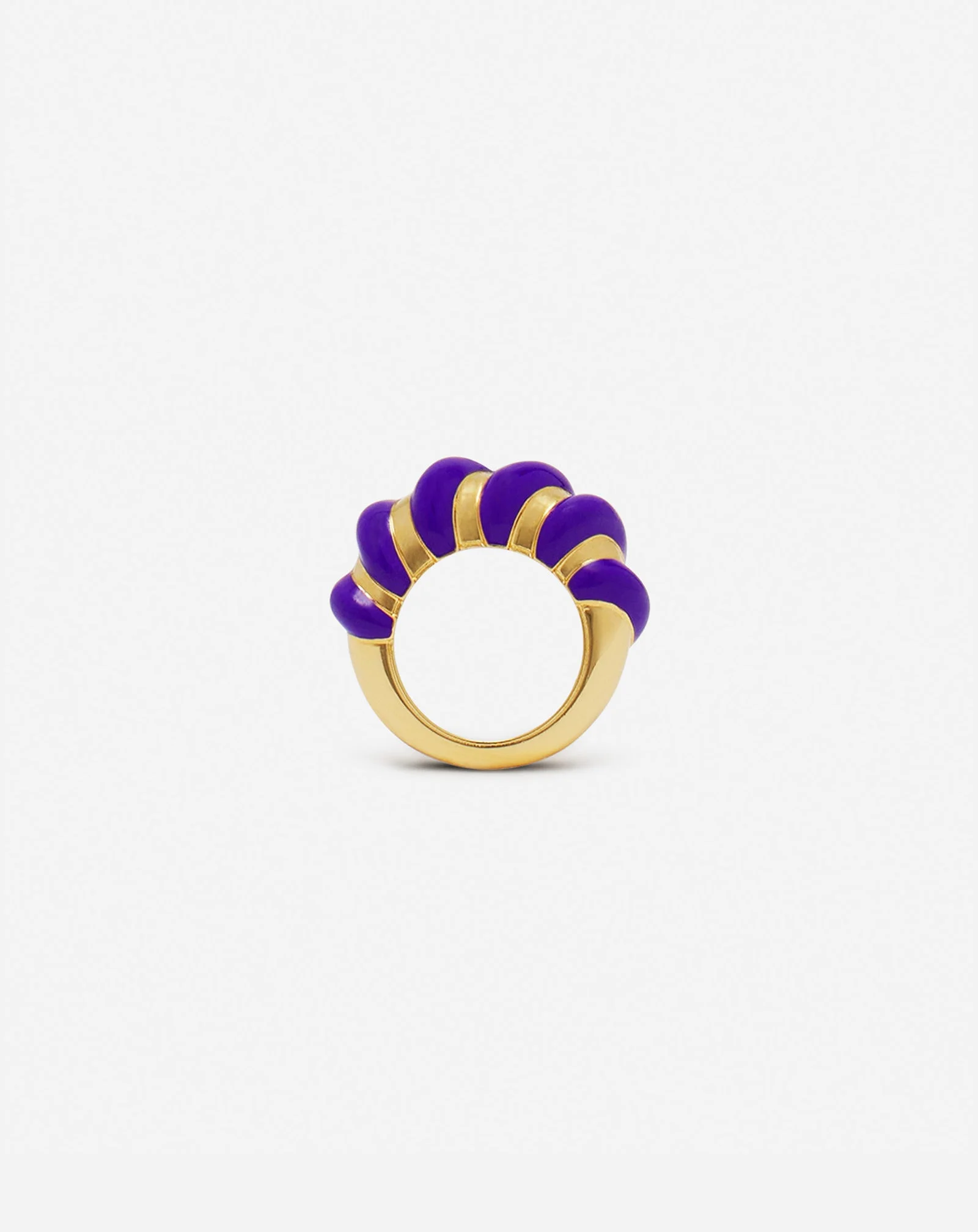 The Melodie Candy line is inspired by the Melodie jewelry. This ring forms a lacquered metal ribbon, echoing the different colors of the season and evoking the delicious world of candy. It embodies both femininity and elegance. Details - Melodie Candy ring - Golden metal finish - Made in Italy Composition - Main fabric : 100% brass SKU: AW-CJFRI1-ENCY-P2572055