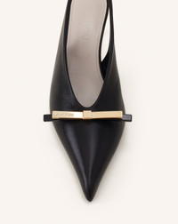 The Lanvin Bow line features a pump with a rear strap and small heel, trimmed with a double bow with an embossed Lanvin logo. Easy to wear, it goes perfectly with both daytime and evening outfits. Details - Lanvin Bow rear strap pumps in leather - Pointed toe - Gold metallic double bow detail with a glossy Lanvin logo - Flared lacquered heel - Slip-on - Elastic strap - Leather insole with an embossed Lanvin logo SKU: FW-PUMP0L-NAPA-A241036