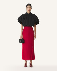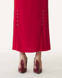 This skirt is crafted from Charmeuse fabric made in Japan. The material is wrinkle-resistant, yet very fluid and lightweight. It brings a delicate and feminine look to everyday style. Details - A-line midi skirt - Pleated and flowing design - Grosgrain waistband - Silver ball buttons on front - Invisible zipper in the back - Made in Portugal Size & fit - For more information, please see our size guide. Composition - Main fabric : 78% viscose woven,20% silk woven,3% elastane woven SKU: RW-ST0006-4778-H2535434