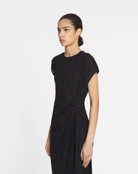 With its fluid pleated fabric and draped waist, this dress embodies the timeless chic of the House of Lanvin. The feminine lines are perfect for an elegant outfit. Details - Asymmetrical pleated dress with a silk lining - Round neck - Invisible zipped fastening - Made in France Size & fit - This style fits true to size, take your normal size - For more information, please see our size guide. Composition - Main fabric : 100% polyester woven - Lining : 94% silk woven,6% elastane woven SKU: RW-DR0068-4521-H241036
