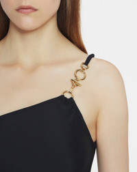 This swimsuit is part of the Lanvin Summer capsule collection. The asymmetrical fit features a chain on the strap, which adds a chic, feminine detail to this swimsuit. Details - Asymmetrical swimsuit - Bustier neckline - Made in Portugal Size & fit - This style is fitted, size up if you prefer a more relaxed fit - For more information, please see our size guide. Composition - Main fabric : 78% polyamide,22% lycra® SKU: RW-SW0001-J390-P2510L