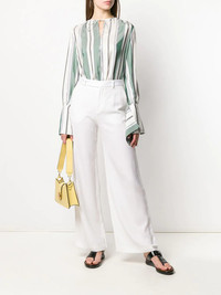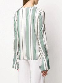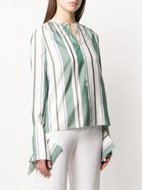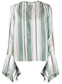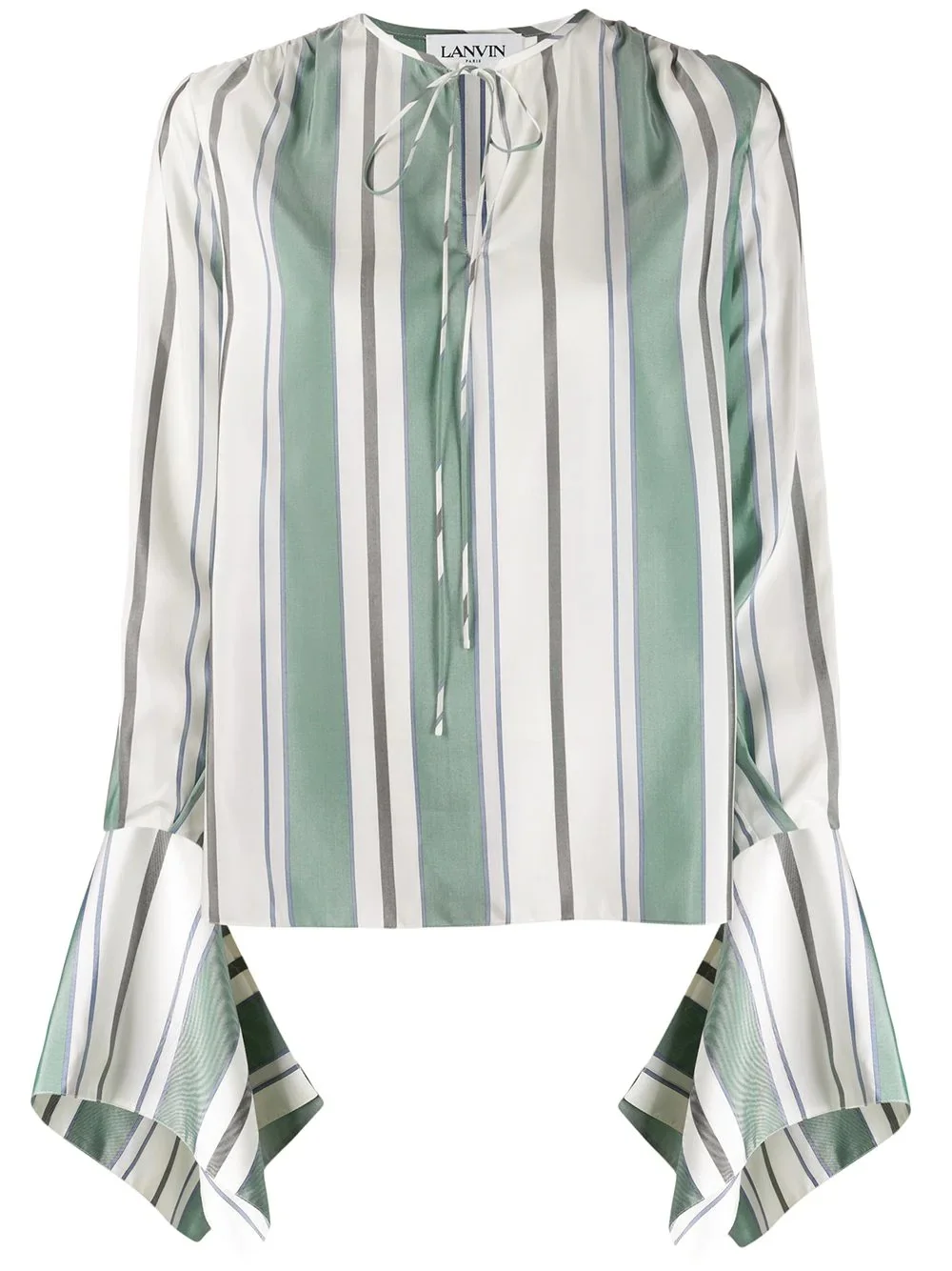 awning stripe blouse With history on its side, Lanvin looks to the courtiers of Paris for inspiration in this statement sleeve silk awning stripe blouse. A heritage silhouette with a modern focus, avoid cuff-dunking embarrassment and stay away from soup dishes - just in case. Featuring a round neck, a tie fastening, vertical stripes, long sleeves and slit cuffs. Imported Composition Silk 100%, Mother of Pearl 100% SIZE & FIT Model measurements Height 5 ft 10 in(1.78 m) Bust/Chest 34.25 in(87 cm) Hips 35.03 in(89 cm) Waist 26.37 in(67 cm) FittingInformation This piece fits true to size. We recommend you get your regular size Cut for a loose fit Made with a lightweight non-stretch fabric Washing instructions Dry Clean Only