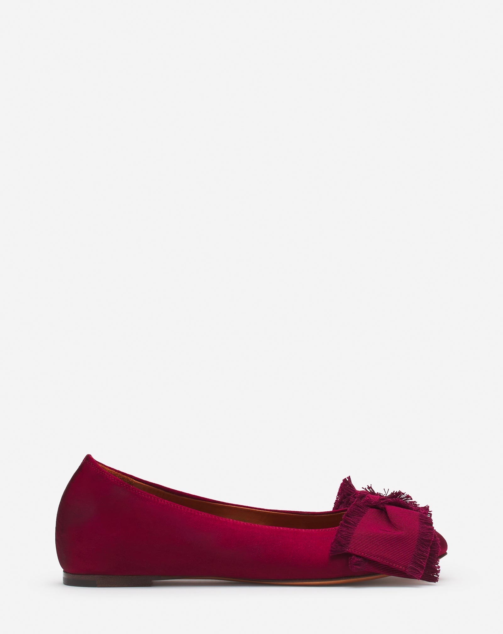 The collection welcomes the return of a House icon: the ballerina flat. This signature Lanvin shoe, which has been emblematic since the early 2000s, combines elegance, simplicity and comfort. It is a must-have and is perfect for a chic, casual outfit. Details - Ballerina flat with a satin bow - Grosgrain bow detail in front - Leather pull tab in back with an embossed Lanvin logo - Leather insole with a stitched Lanvin label - Round toe - Made in Italy Size & fit - This style fits true to size, you may take your usual size. SKU: FW-BAMB04-SATN-P2465536