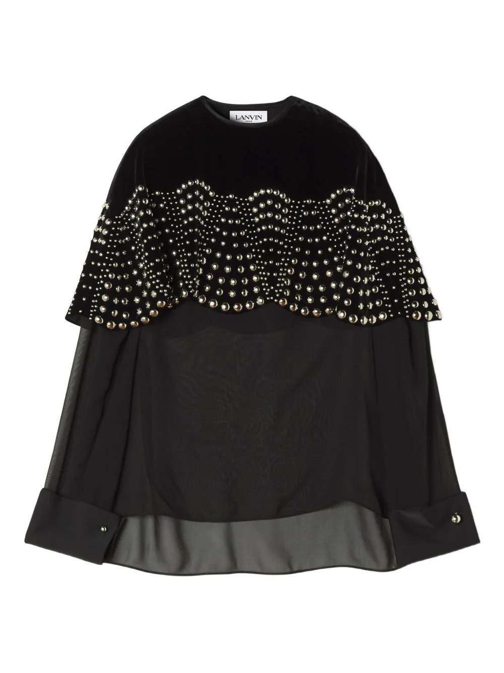 beaded velvet top Highlights - Black - Bead embellishment - Velvet panel - Round neck - Long sleeves - Buttoned cuffs Made in Italy Composition Silk 100%