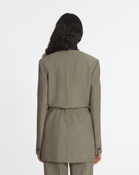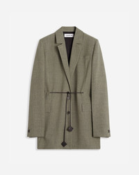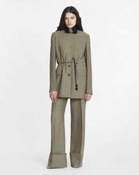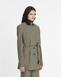 The shoulder pads and thin belt on this jacket delicately structure the silhouette. Its modern, feminine lines are ideal for an elegant daytime outfit. Details - Belted jacket in woven virgin wool - Relaxed fit - Collar with notched lapels - Integrated shoulder pads - Single-breasted - Buttoned fastening and slit on the cuffs - Flap pockets - Bemberg lining - Made in Italy Size & fit - This style fits true to size, take your normal size - For more information, please see our size guide. Composition - Main fabric : 100% virgin wool woven - Lining : 100% bemberg tisse SKU: RW-JA0021-6040-P2502540
