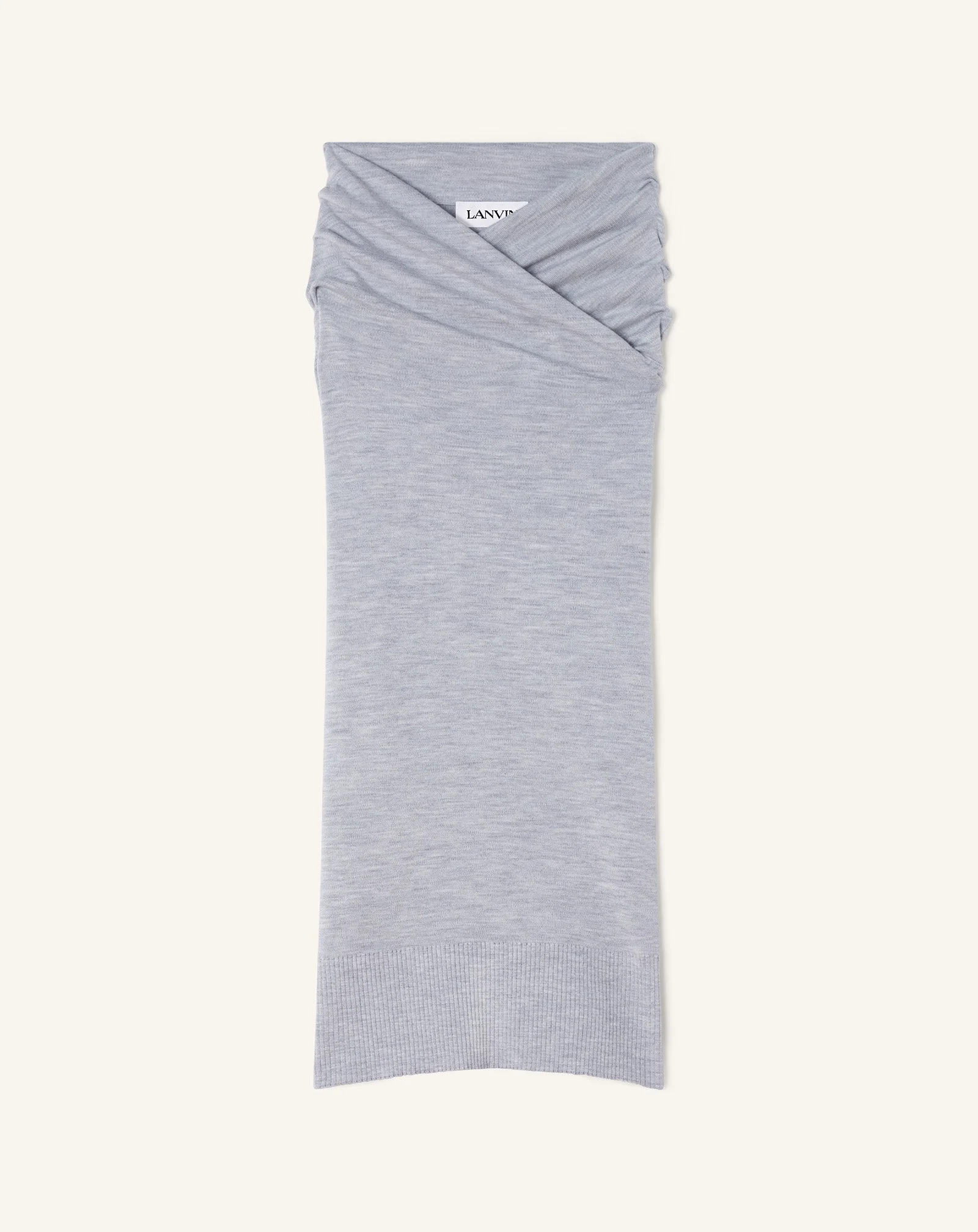 This skirt is a tribute to the refined draping designs created by Jeanne Lanvin for her Haute Couture creations. The V-shaped waistline, a signature feature of the House, echoes the geometric motifs that inspired the couturier throughout Lanvin's collections. This piece is crafted from fine merino wool knit, an elegant and sophisticated fabric. The feminine lines lend themselves perfectly to pairing it with an elegant top for a polished daytime outfit. Details - Draped midi skirt in wool - Mid-length pencil fit - V-shaped draped belt - Made in Italy Size & fit - This style fits true to size, take your normal size - For more information, please see our size guide. Composition - Main fabric : 97% wool knitted,2% polyamide knitted,1% viscose knitted SKU: RW-ST0008-K089-P2612XS