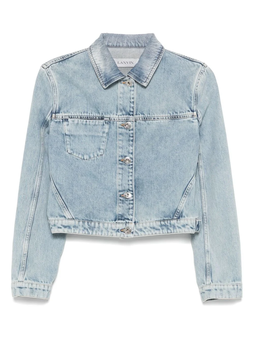 denim jacket Highlights - Light blue - Front button fastening - Chest patch pocket - Buttoned cuffs - Waist tabs Made in Italy Composition Outer: Cotton 100%, Calf Leather 100% Lining: Cotton 100% SIZE & FIT Model measurements Height 5 ft 11 in(1.8 m) Bust/Chest 32.67 in(83 cm) Hips 36.22 in(92 cm) Waist 24.4 in(62 cm) FittingInformation Designed for a relaxed fit, this piece allows for comfort and movement when worn The adjustable tabs allow for fitted preferences Sturdy and hard-wearing, this denim piece offers no stretch